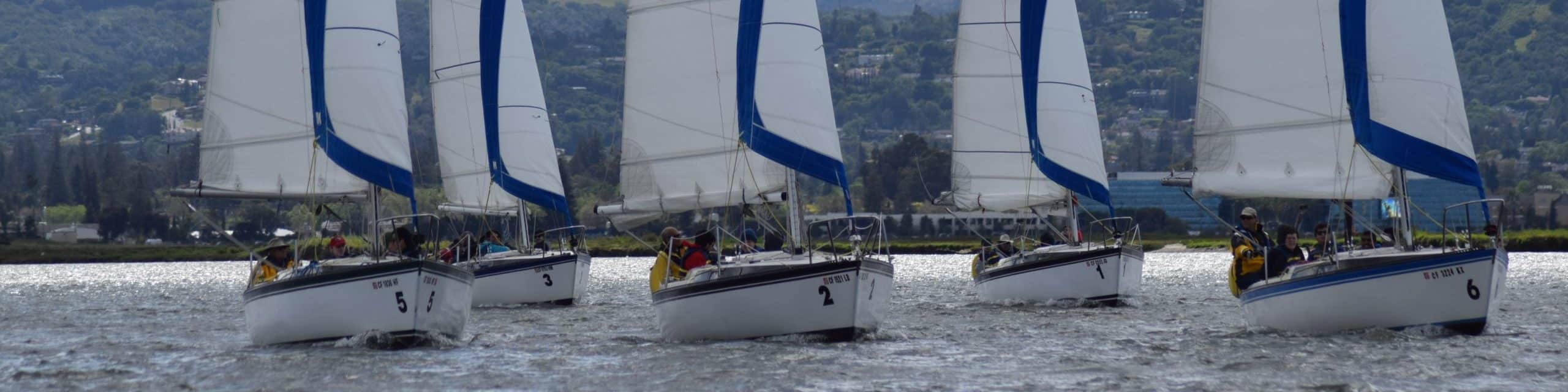 The Merit 25 is a solidly built 25-foot sloop that seats five comfortably in a self-draining cockpit. Despite relatively simple control systems, the Merit has the durability and flexibility for comfortable, all-season sailing in the Bay Area, where typical wind speeds can range from near zero to above 25 knots.  Spinnaker’s Merits are rigged for sailing in good daytime visibility under a full main and working-size roller-furled jib. Most of the club’s Merits can carry spinnakers as well. All the mainsails can be reefed for winds above 18 or so knots. In strong winds, the boat can be sailed comfortably under reefed main and reduced or completely furled jib.